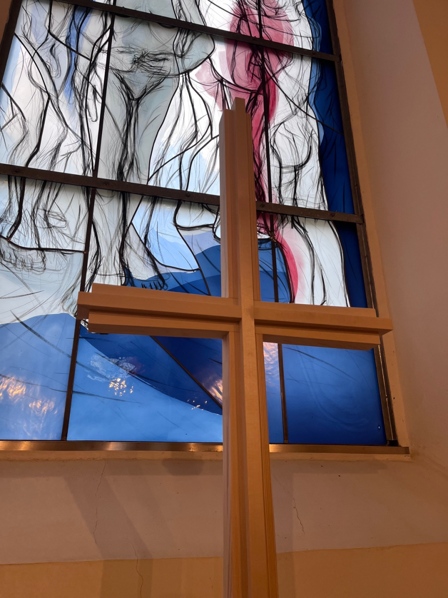 Der bekannte Grafiker Klaus Hirsch versah seinerzeit die Friedhofskirche mit neuem Mobiliar: Rednerpult, Sideboard und hohen Leuchtern verlieh er klare, reduzierte Formen. Wir erhielten die Möglichkeit, das Kreuz und weitere kleine Leuchter seiner Gestaltungsidee anzupassen. Entstanden sind harmonische, wertige und aufeinander abgestimmte Kirchenmöbel/Utensilien.